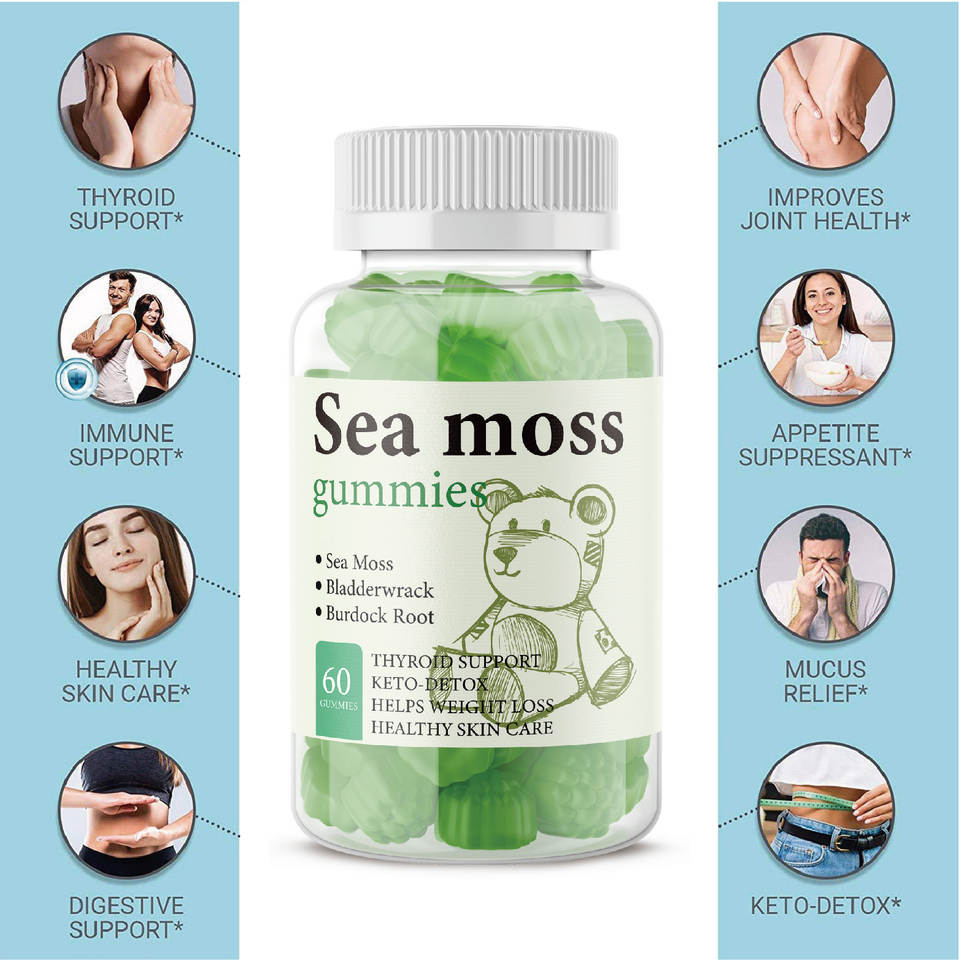 มอสทะเลมังสวิรัติและ bladderwrack gummies 60ระบบนับสำหรับผู้ใหญ่ฉลากส่วนตัว