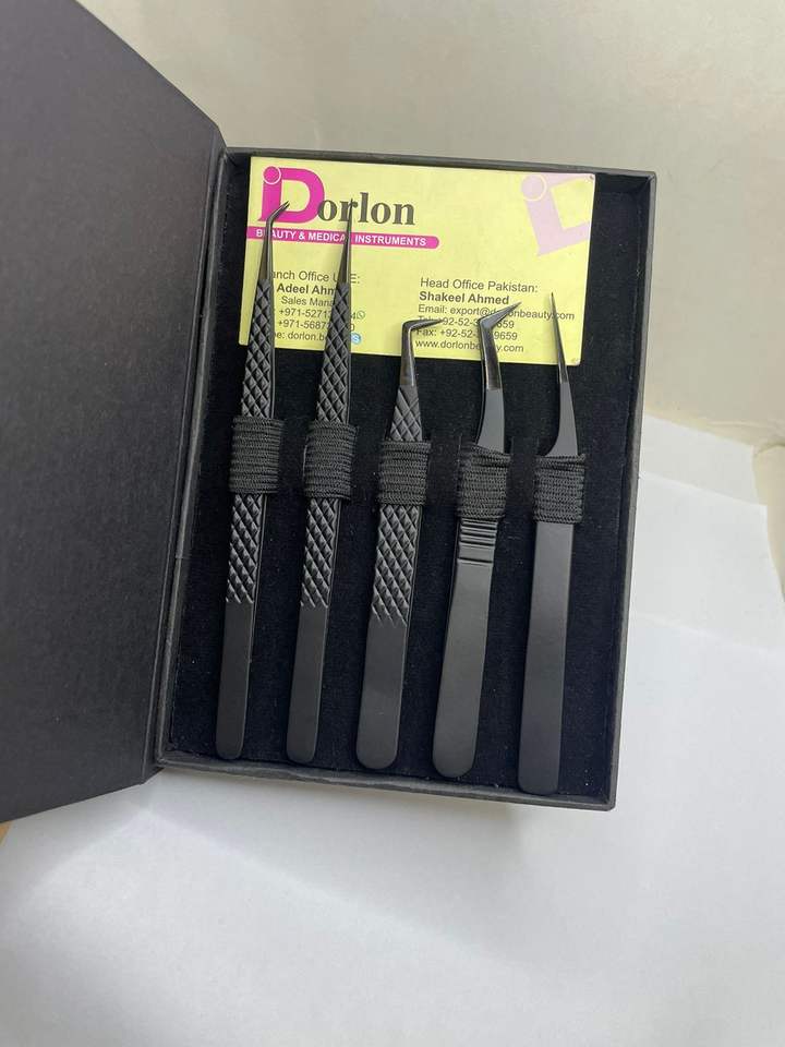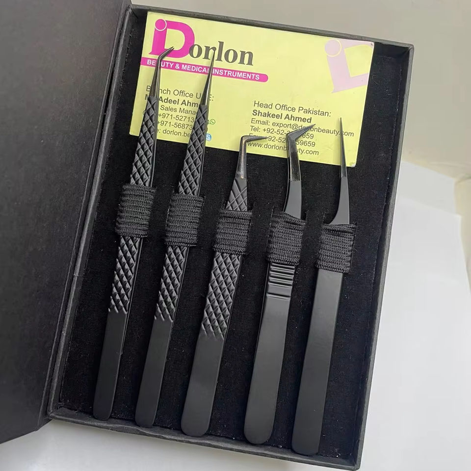 แหนบปลายต่อขนตาสีดำด้านพร้อมกล่องใส่เพิ่มวอลลุ่มและแยกฉลากตามต้องการ