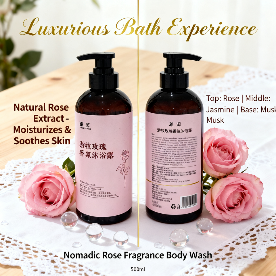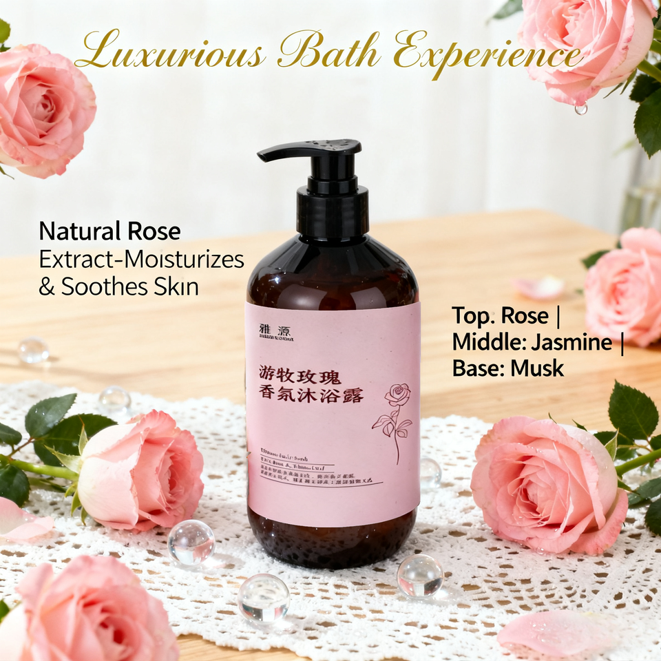 เจลอาบน้ำเหลวกลิ่นกุหลาบ500มล. ชุดของขวัญสำหรับผู้หญิงชุดสมุนไพรออร์แกนิกธรรมชาติให้ความชุ่มชื้นดูแลร่างกายหรูหราฉลากส่วนตัว