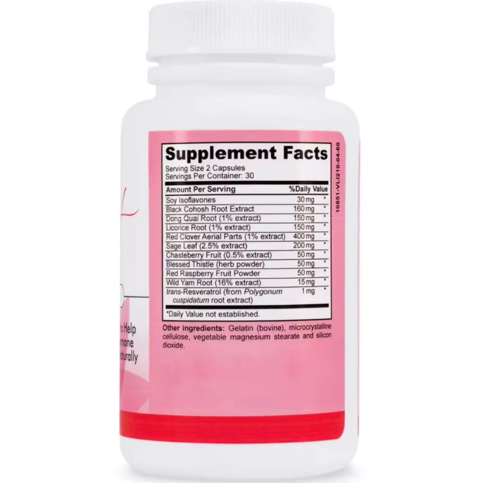 อาหารเสริมสมุนไพรปรับสมดุลฮอร์โมนสำหรับผู้หญิง แบรนด์ส่วนตัว แคปซูลสารต้านอนุมูลอิสระ สารสกัดจากถั่วเหลืองไอโซฟลาโวน สารสกัดจากรากแบล็คโคฮอช ไม่เหมาะสำหรับ
