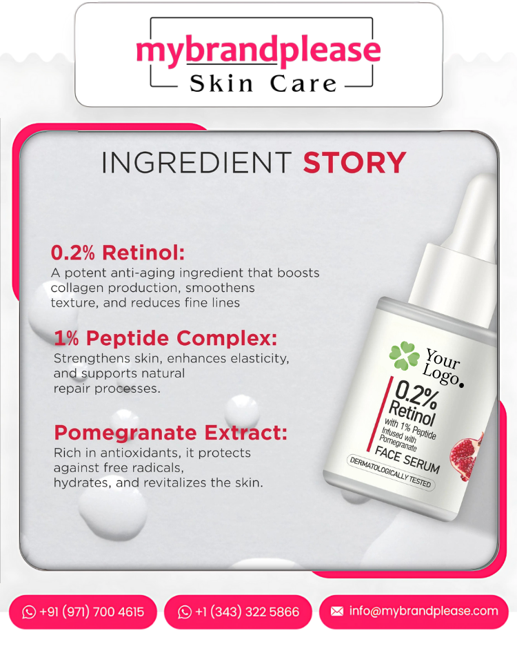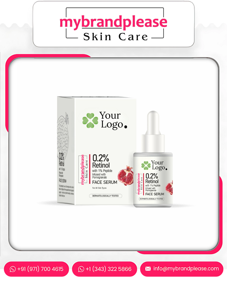 ชื่อผลิตภัณฑ์:0.2% เรตินอล + เปปไทด์1% ผสมกับเซรั่มบำรุงผิวหน้าทับทิม