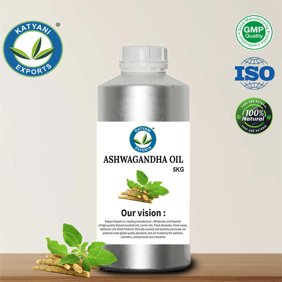 น้ำมันสมุนไพรผสมอัชวากันธา (วิทาเนีย ซอมนิเฟอรา) สำหรับฉลากสินค้าส่วนตัว - น้ำมันสีน้ำตาลอ่อนถึงเหลือง ขายส่ง ผู้ส่งออก OBM