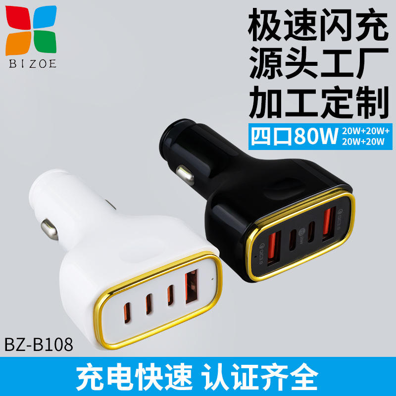 ที่ชาร์จในรถ PD เร็ว QC3.0 4พอร์ตอเนกประสงค์80W รุ่นส่วนตัว