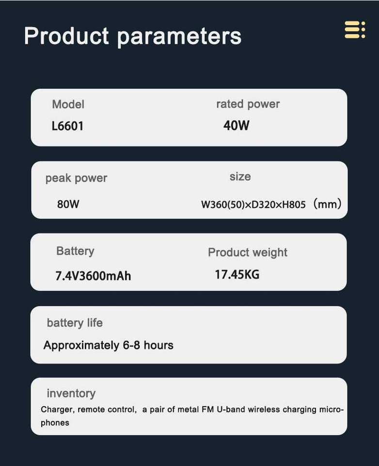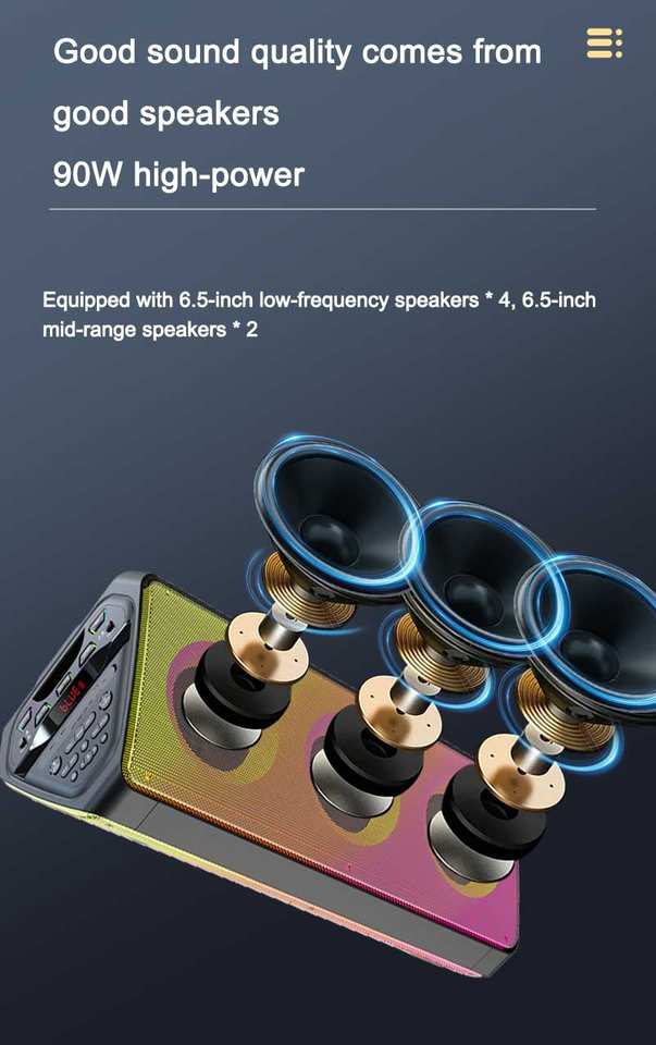 ลักษณะ:ไฟ LED สีสันสดใส, คาราโอเกะ, ไฟ LED กระพริบ, ดึงดูดด้วยแม่เหล็ก, ชาร์จไร้สายสำหรับโทรศัพท์มือถือ