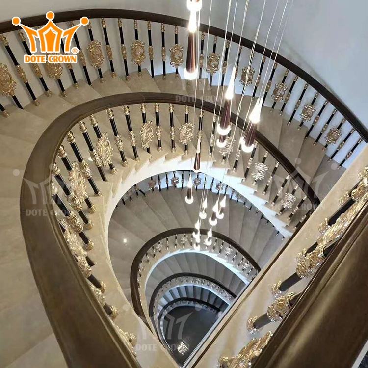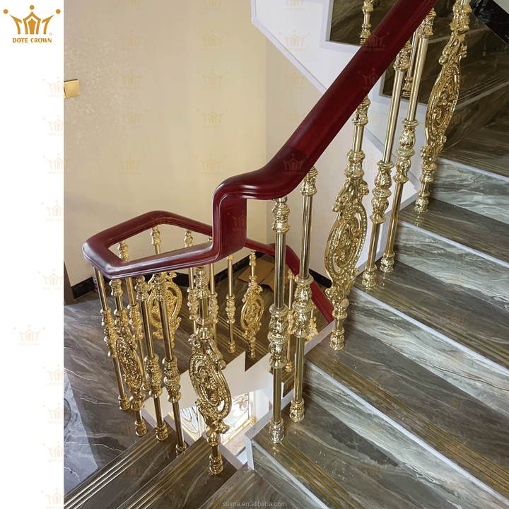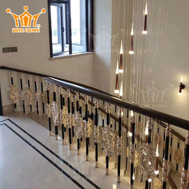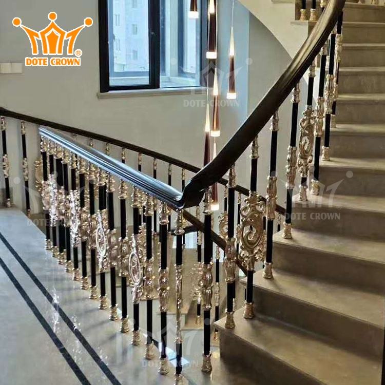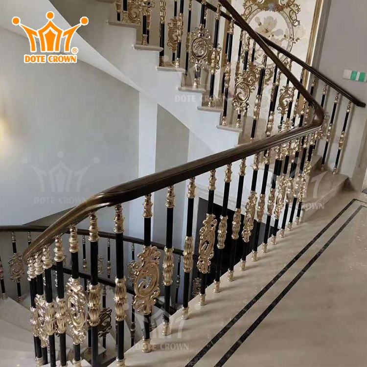 ราวจับอลูมิเนียมหล่อแบบยุโรปสำหรับวิลล่าราวบันไดแบบวงกลมราวบันไดอลูมิเนียมอัลลอยด์ราวบันไดกระจก