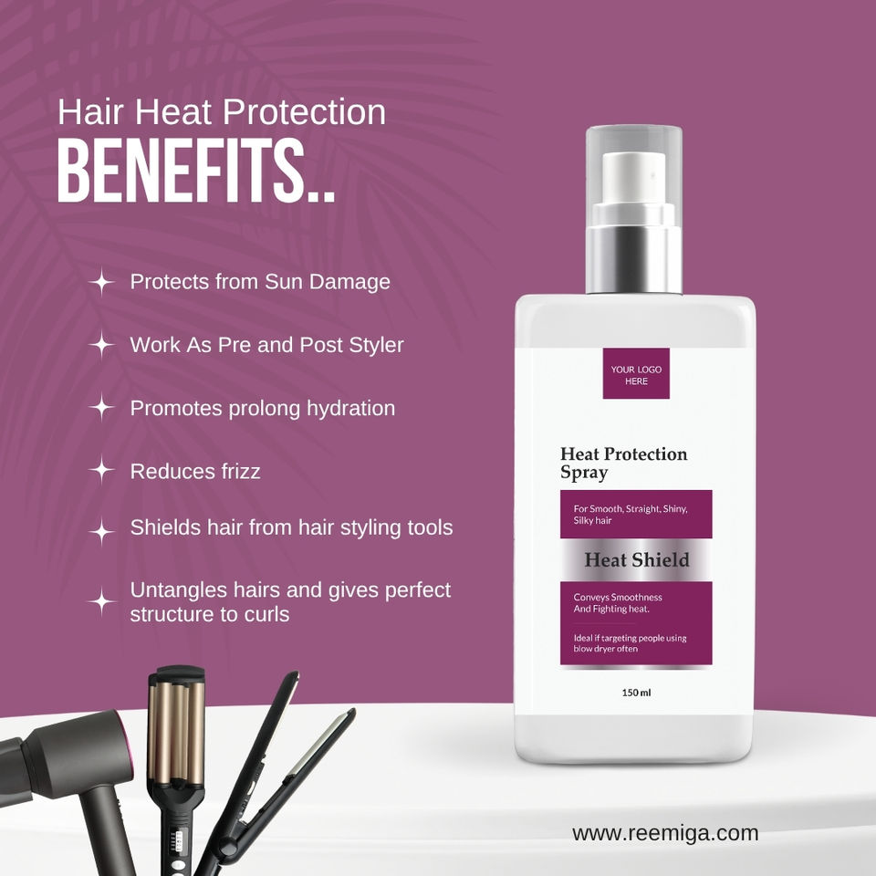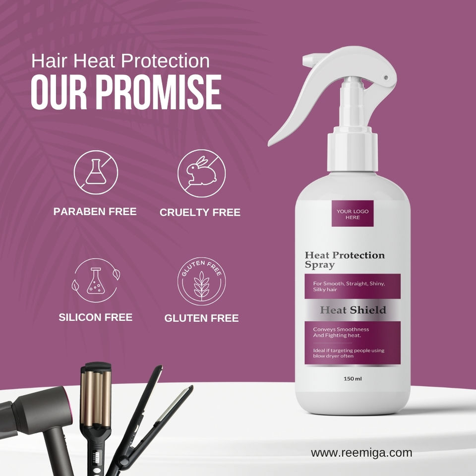 น้ำมันใส่ผมป้องกันความร้อน สูตรเพิ่มความเงางาม ปราศจากสารซิลิโคน ไม่ทดลองกับสัตว์ ผลิตในอินเดีย (ฉลากสินค้าสั่งทำ)