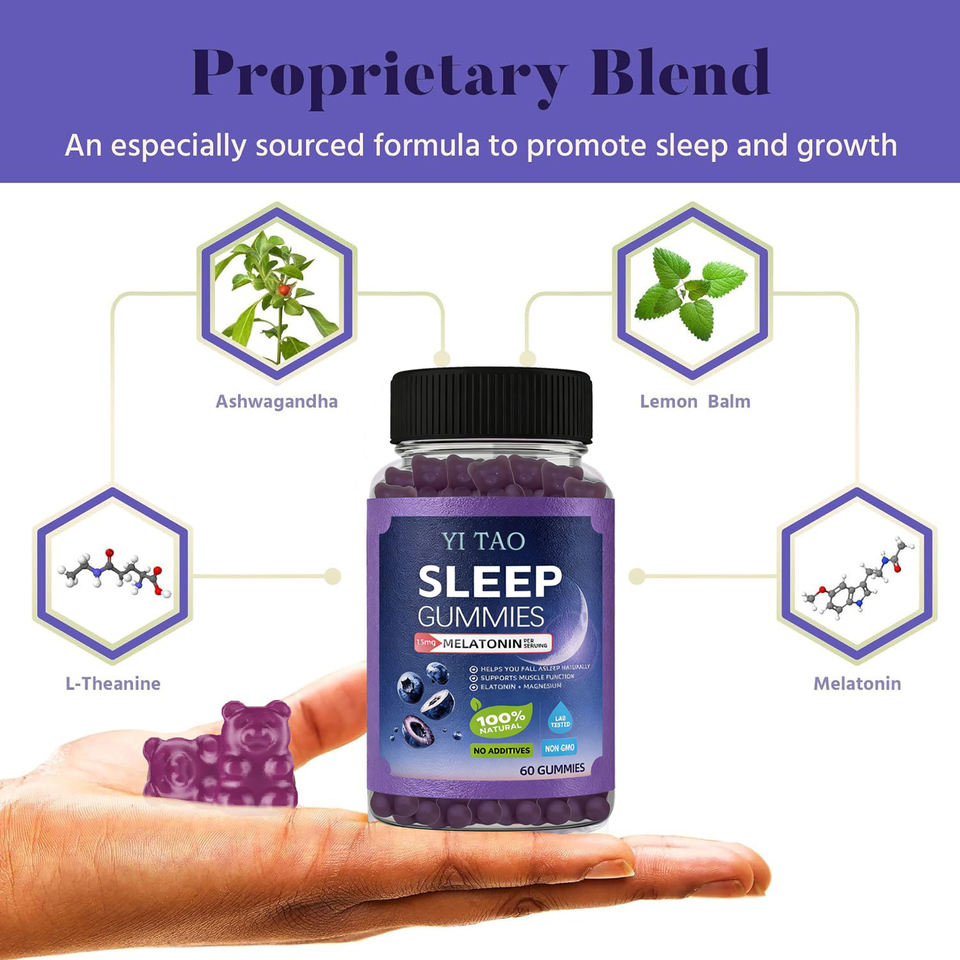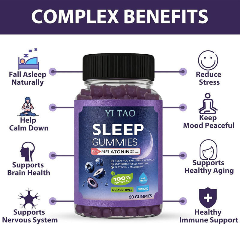 อาหารเสริมฉลากส่วนตัว เมลาโทนินกัมมี่คุณภาพสูงสำหรับผู้ทานมังสวิรัติ เพื่อการผ่อนคลายและการนอนหลับ