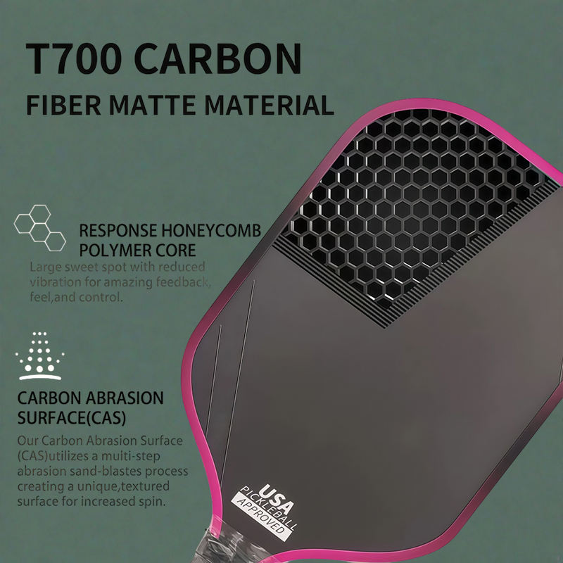 Pro 16mm T700 Carbon Fiber Pickleball Paddle 3S Core Lightweight High Spin Control Racket for Adults Youth Beginners Tournament