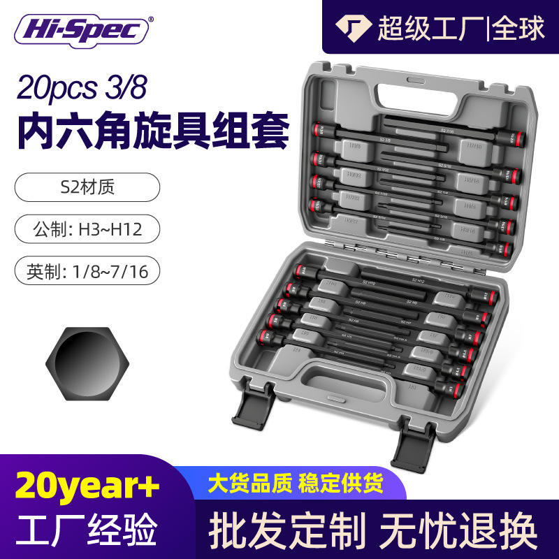 ชุดประแจหกเหลี่ยมแบบยาว 3/8 นิ้ว 20 ชิ้น รุ่น Pro สำหรับงานอุตสาหกรรม พร้อมชุดหัวไขควงด้ามตรง