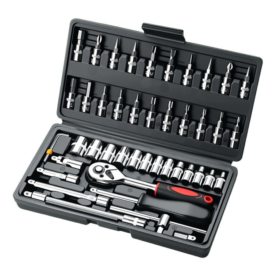 ชุดประแจบล็อก 46 ชิ้น ขนาด 1/2 นิ้ว ผลิตจากเหล็ก Cr-V พร้อมแม่เหล็ก สำหรับรถยนต์ รถจักรยานยนต์ และงาน DIY