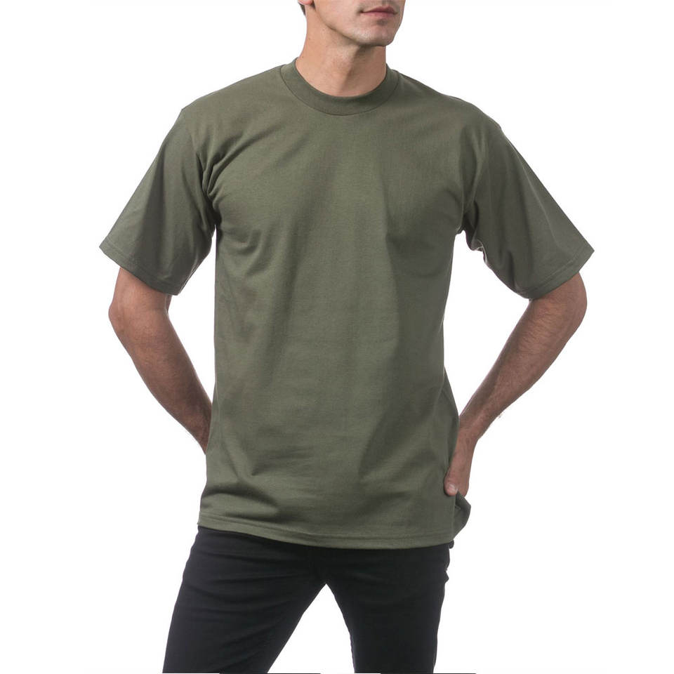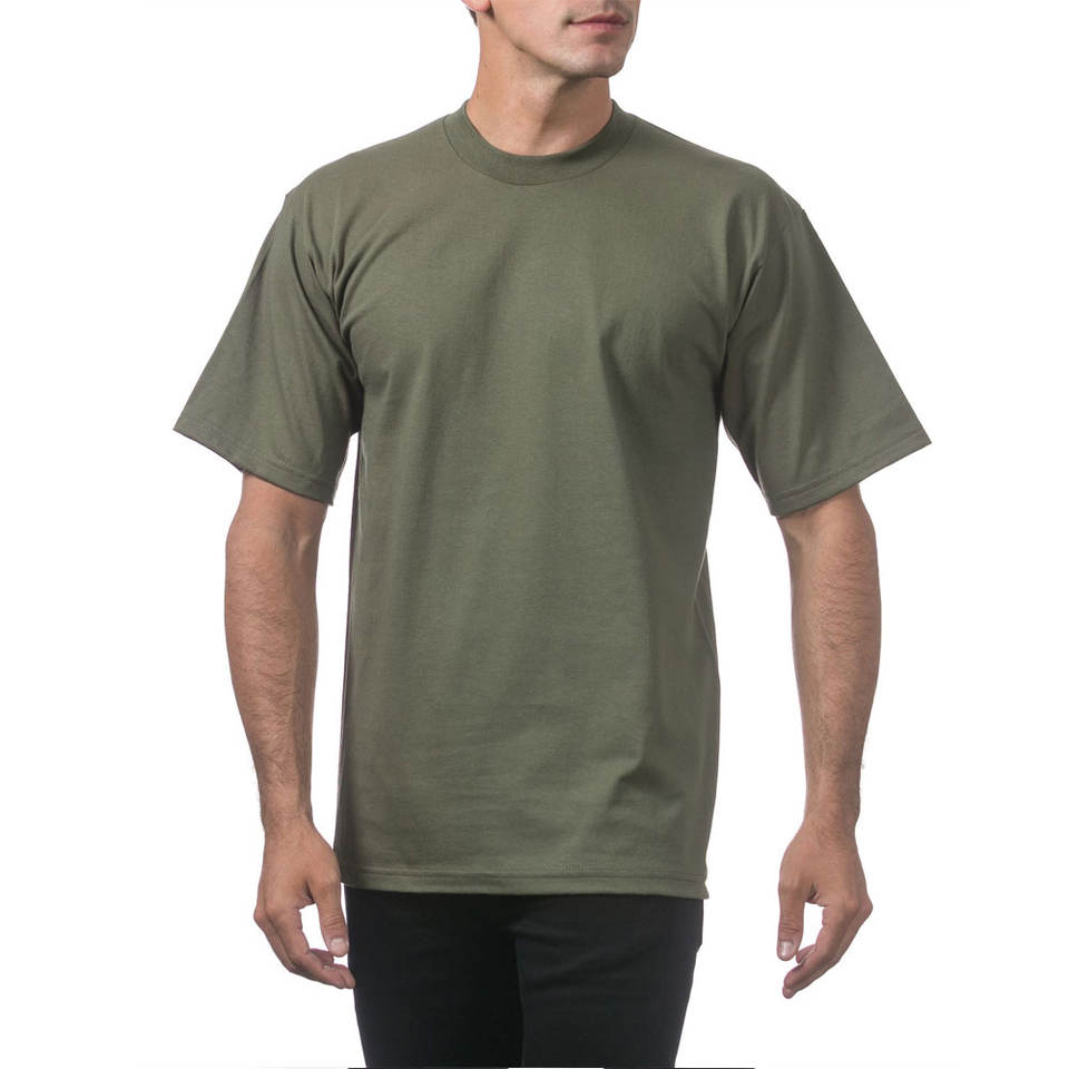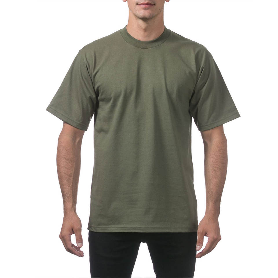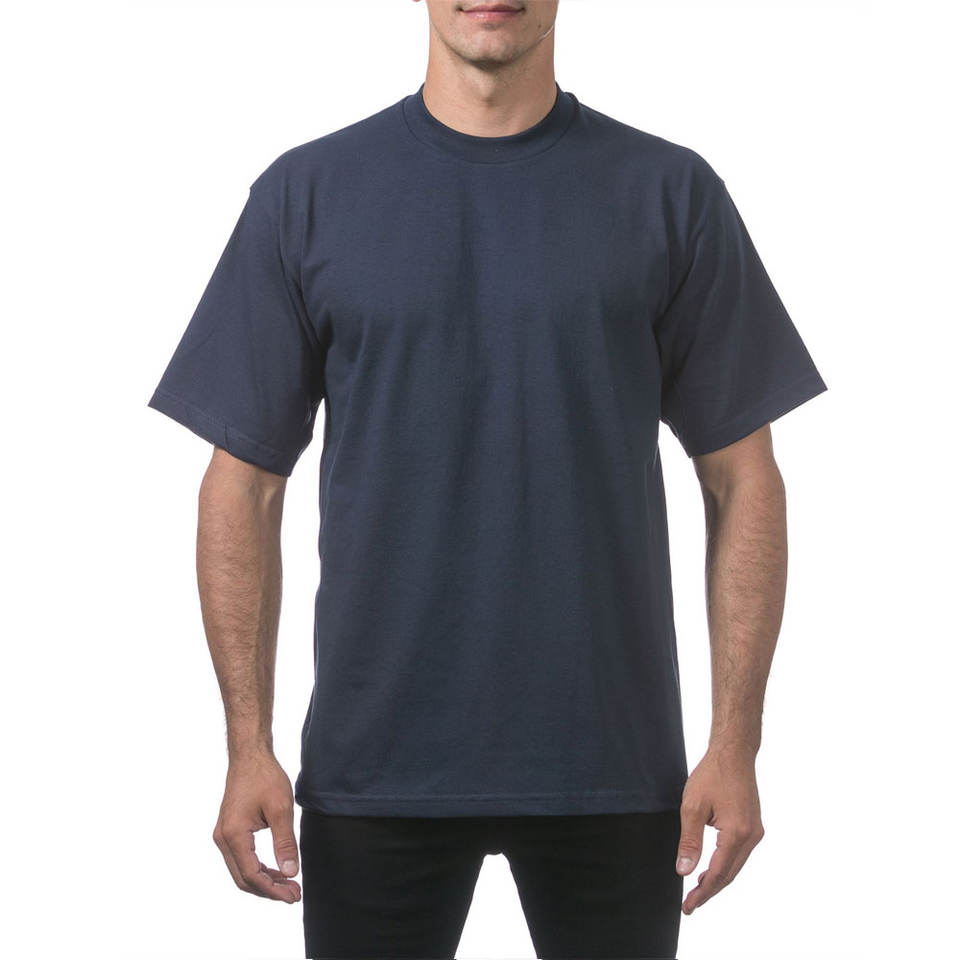 Pro Club เสื้อยืดคอกลมแขนสั้นผ้าฝ้ายรุ่นเฮฟวีเวตสำหรับผู้ชายเสื้อยืดผ้าฝ้ายสีกรมท่าโลโก้ตามสั่ง