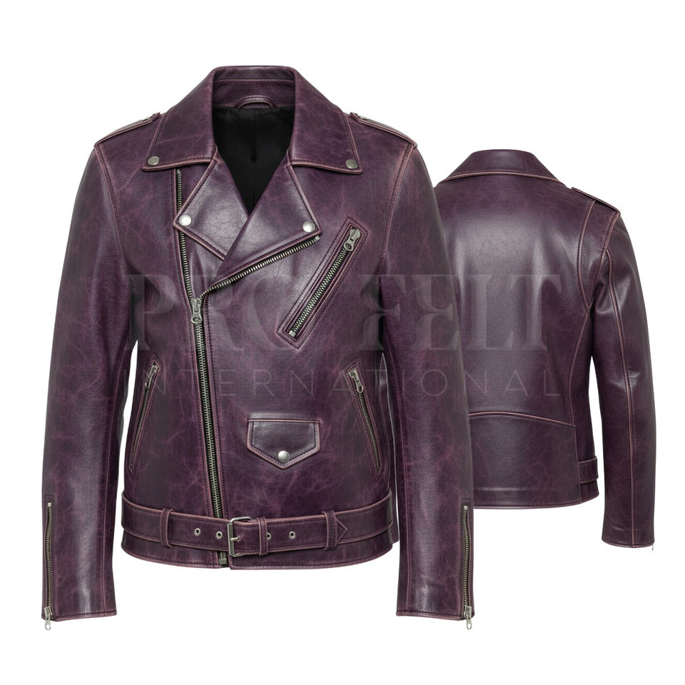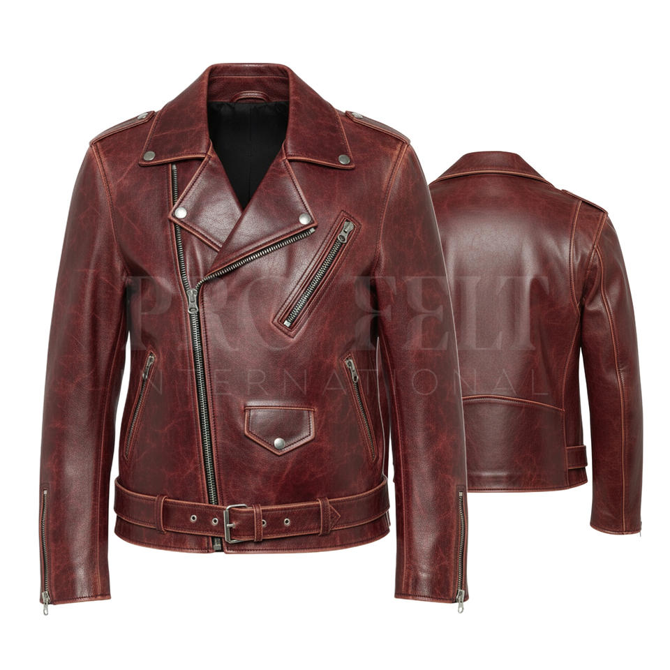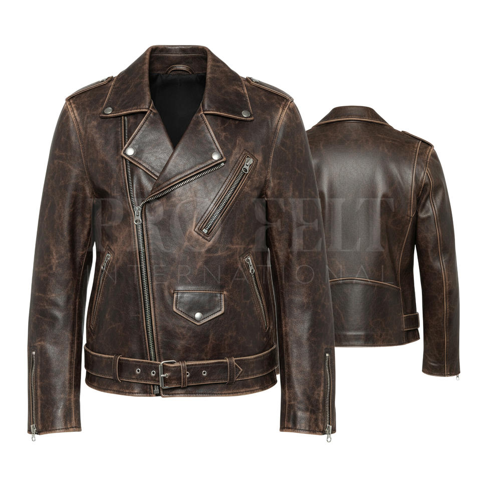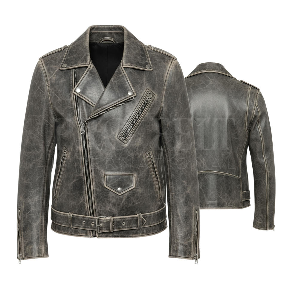 แจ็กเก็ตหนังแท้สำหรับนักขี่จักรยานสีดำวินเทจ