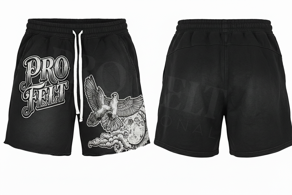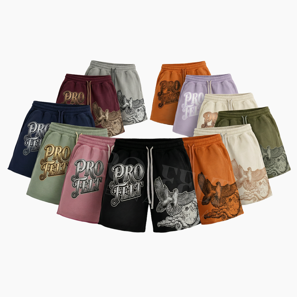 ผู้ผลิต Pro Felt ขายส่ง กางเกงขาสั้นลำลองสตรีทแวร์ผ้าฝ้าย 100% สกรีนลายตามสั่ง เอวยางยืดพร้อมเชือกผูก