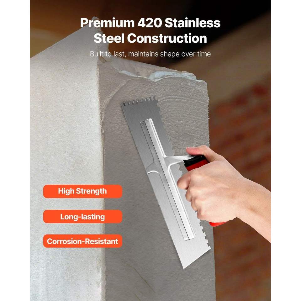 เกรียงสเตนเลส10.9x4.4in เกรดโปรแบบสี่เหลี่ยมเครื่องมือกระเบื้องปูน