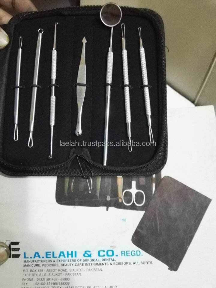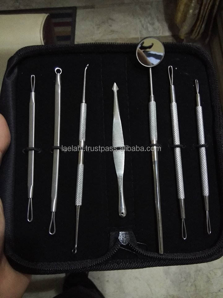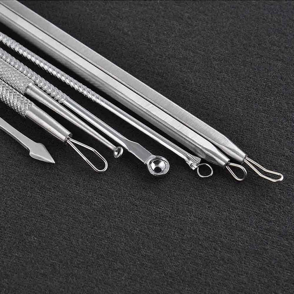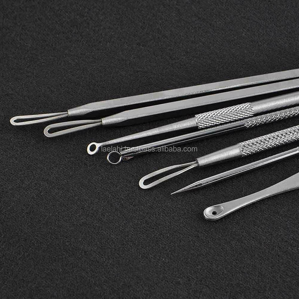 ชุดเครื่องมือกำจัดสิวหัวดำทำจากสเตนเลสสตีลจากญี่ปุ่นมือโปรเครื่องดูดสิวใบหน้าสีเงิน
