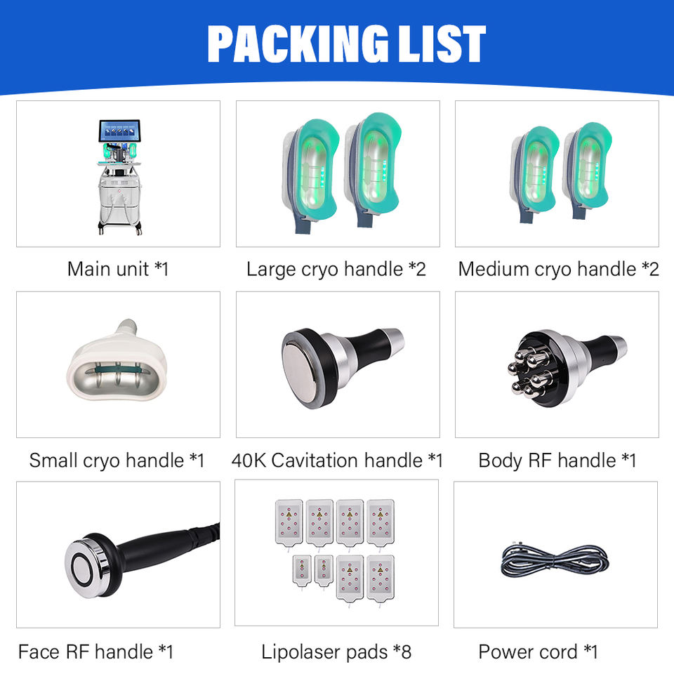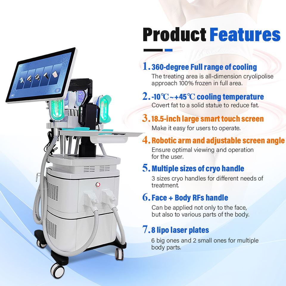 เครื่องกระชับสัดส่วน360เย็นแช่แข็งไขมัน criolipolisi Cavitation RF cryolipolysis 9in1หน้าจอใหญ่ร้านเสริมสวยมืออาชีพ