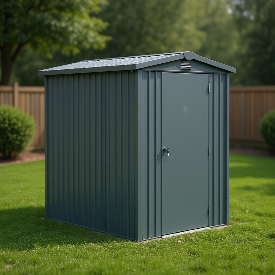 โรงเก็บของโลหะลูกฟูกชุบสังกะสีแบบเอเพ็กซ์ รุ่นโปร ซีรีส์ 5 ขนาด 5x6 ฟุต พร้อมช่องระบายอากาศสองช่อง สำหรับจัดเก็บในสวน