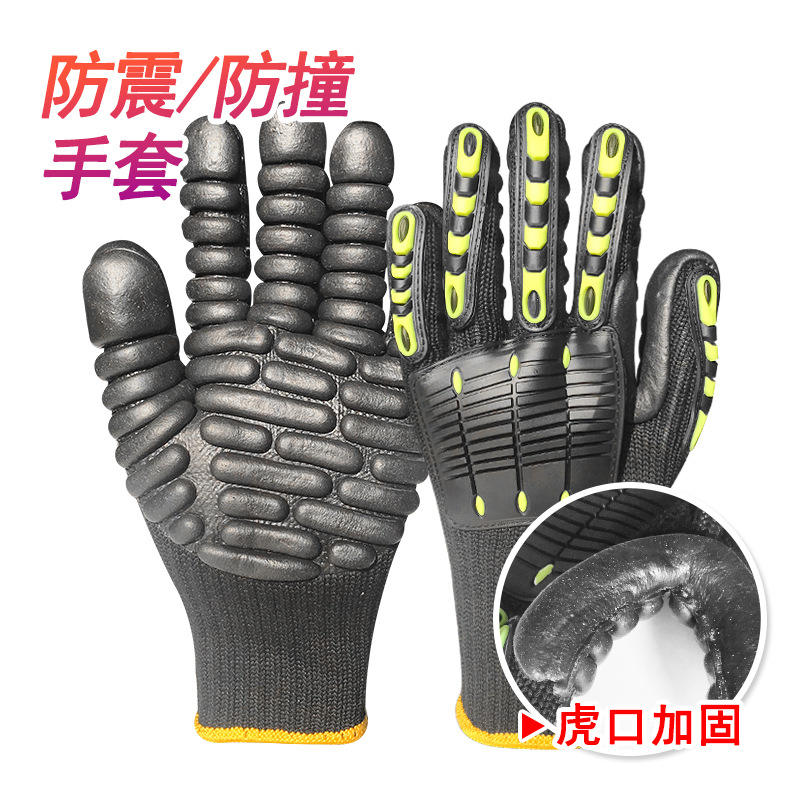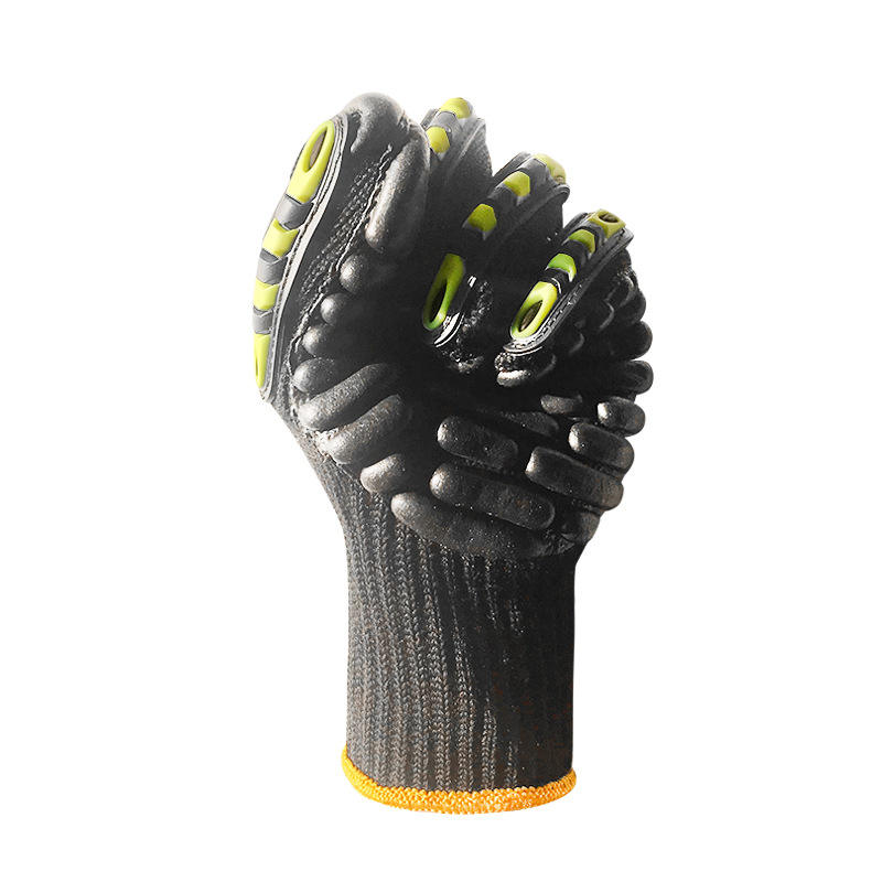 ถุงมือลดแรงกระแทก ProSafe ปลายนิ้วเคลือบไนไตรล์แบบลายดอกยางรถแทรกเตอร์ ทนต่อการเสียดสี สำหรับป้องกันการใช้งานกับสว่านไฟฟ้า
