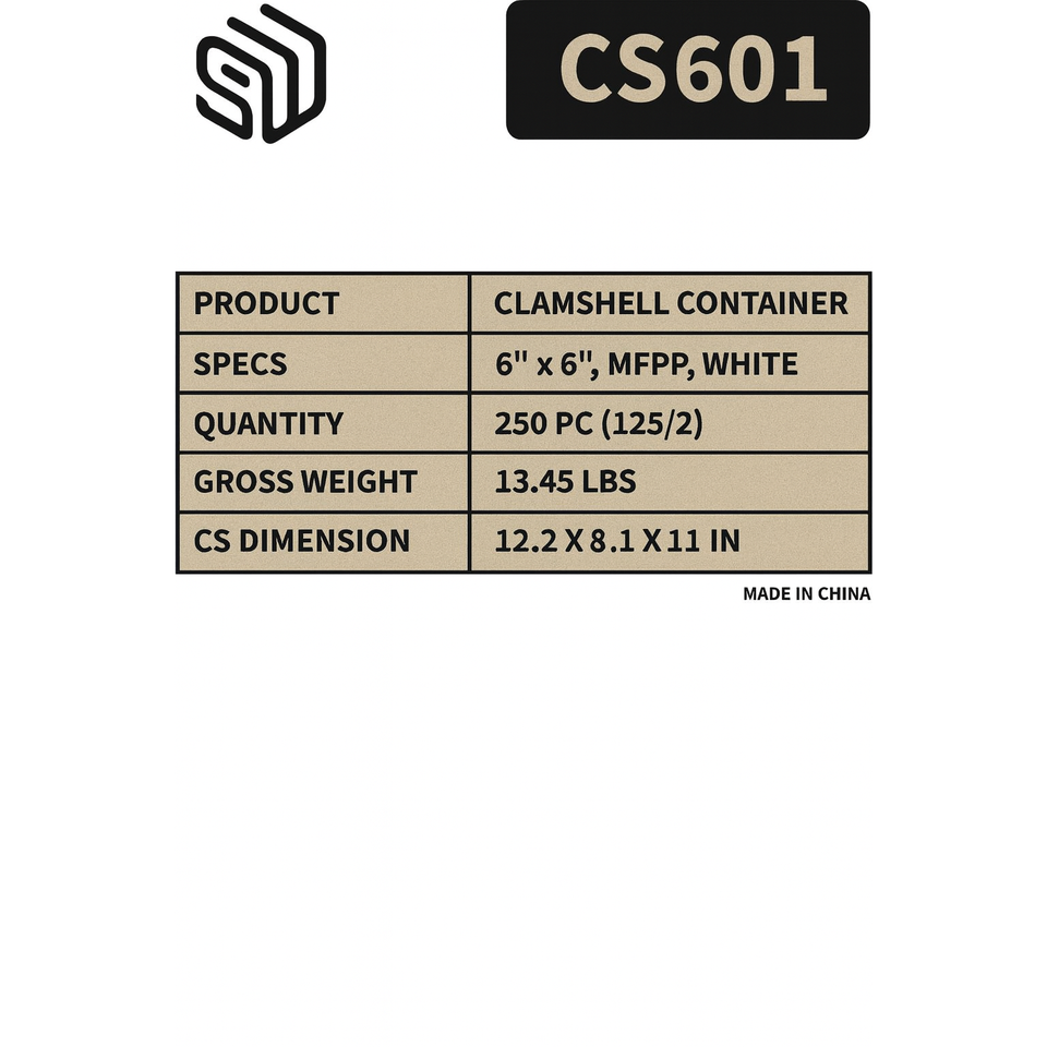 กล่องใส่อาหารแบบมีฝาปิด ProTakeOut [6 x 6 x 3 นิ้ว] สีขาว 1 ช่อง บรรจุ 250 กล่อง แบบล็อคกลาง ทนทาน เป็นมิตรกับสิ่งแวดล้อม ผลิตจากวัสดุ MFPP