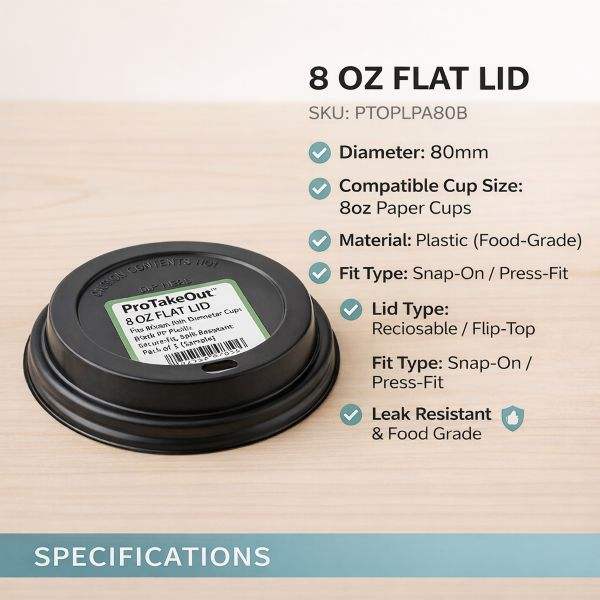 แก้วกระดาษ ProTakeOut [8 ออนซ์] ฝาปิดแบบแบน ปิดผนึกได้ ขอบ 80 มม. สีดำ พลาสติก PP แพ็ค 1000 ใบ (50/20) ปิดสนิท ป้องกันการหก