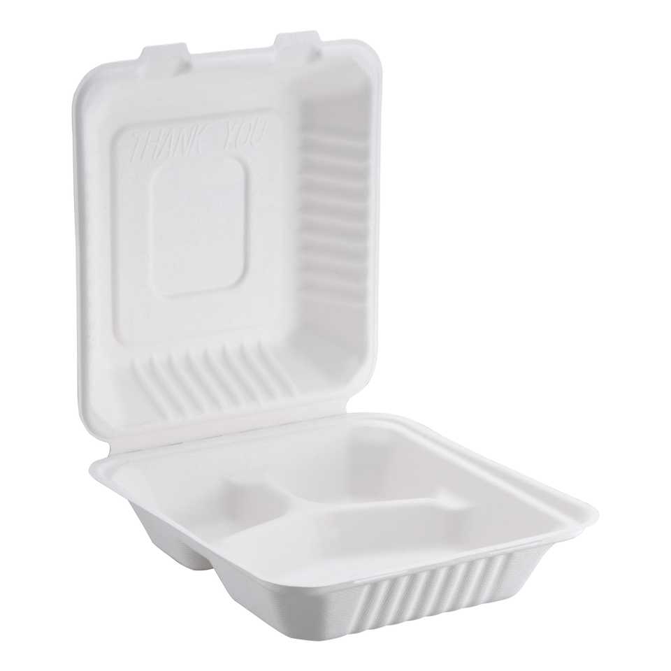 ถุงกระดาษแบกาสส์แบบ 3 ช่อง ProTakeOut [9 x 9 x 3 นิ้ว] แพ็ค 200 ชิ้น (100/2) ภาชนะแบบมีฝาปิด ปราศจากสาร PFAS สีขาว ย่อยสลายได้