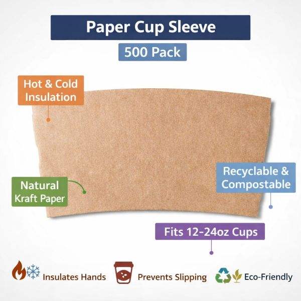 ปลอกหุ้มแก้วกระดาษ ProTakeOut ป้องกันน้ำ/น้ำมัน ปราศจากสาร BPA สำหรับแก้วขนาด 12-24 ออนซ์ แพ็ค 1000 ชิ้น (50/20) ป้องกันการรั่วซึม