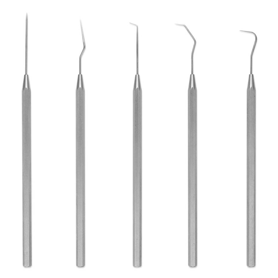 ชุดหัววัดแบบหลายรูปร่าง5ชิ้นประกอบด้วยหัววัดตะขอโค้งงอแบบโค้งเดี่ยวยาวโค้งคู่แบบสามหัว