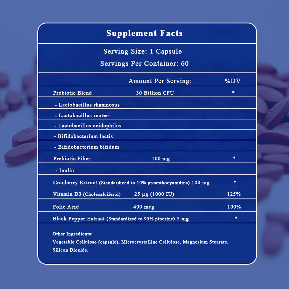 ส่วนผสมหลัก:Prebiotic Fiber, Cranberry Extract
