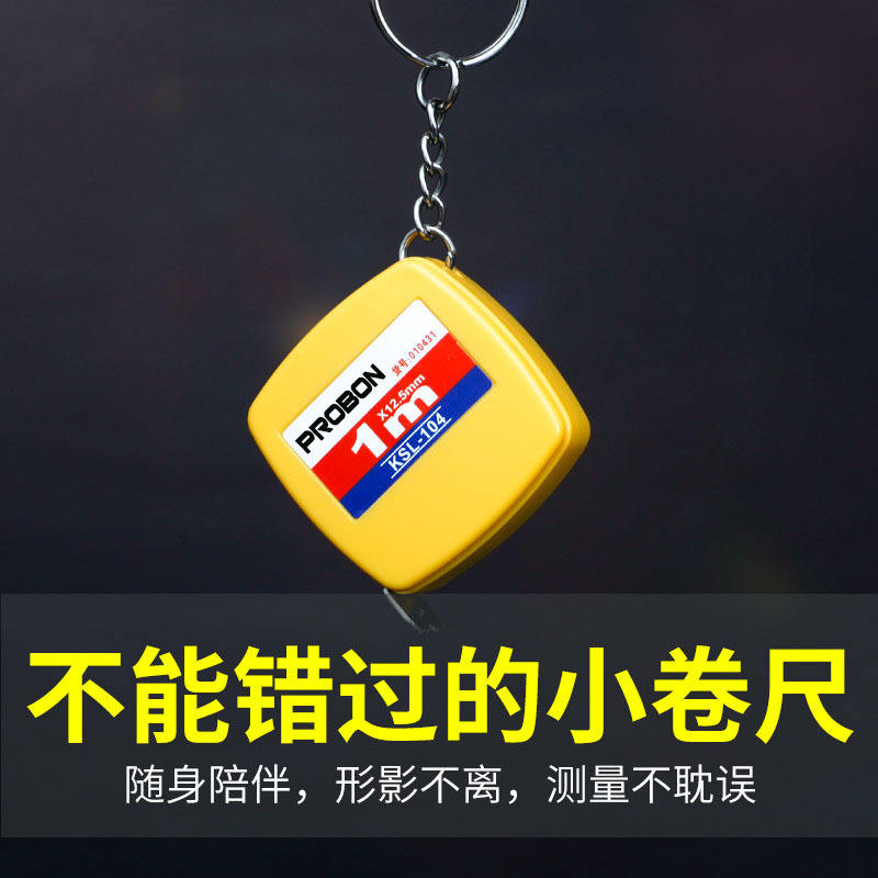 ตลับเมตร Probon Mini 1 เมตร 12.5 มม. ใบมีดเหล็ก แบบดึงกลับได้ รุ่น KSL-104 กล่อง ABS ทรงเหลี่ยม พร้อมพวงกุญแจ