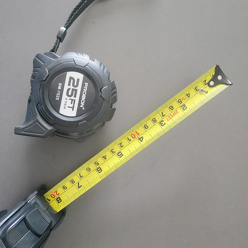 ตลับเมตรเหล็ก Probon ขนาด 25 ฟุต x 7.5 เมตร สีดำ ทนทาน สำหรับงานก่อสร้าง