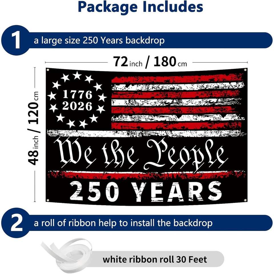 ฉากหลังงานฉลองครบรอบ 250 ปี Probsin ขนาดใหญ่ 60x90 นิ้ว โปสเตอร์รักชาติธงชาติอเมริกา 1776-2026 We the People สำหรับงานปาร์ตี้
