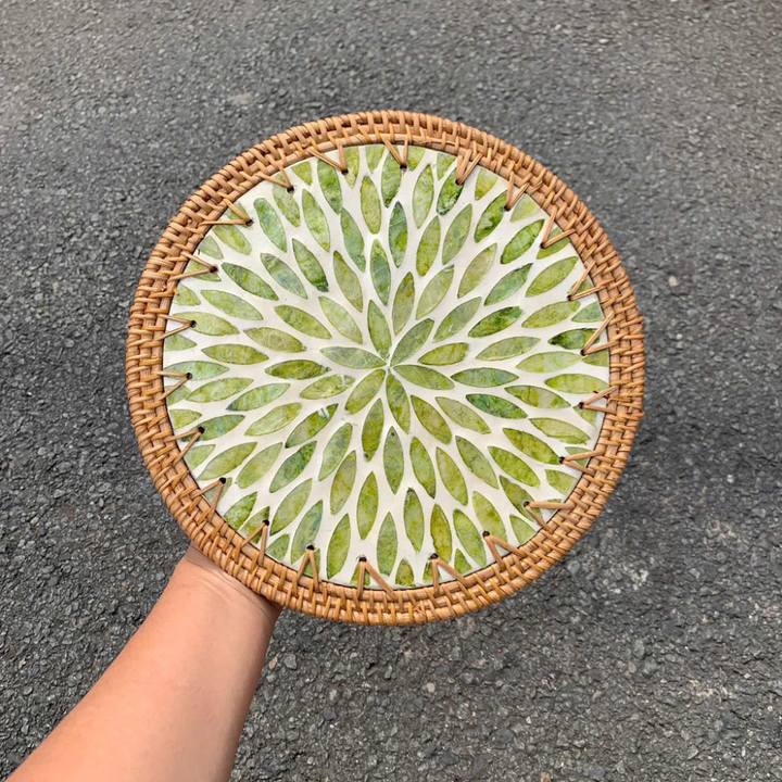 ที่รองแก้วหวายลายดอกไม้แบบฝังมุกทำจากเวียดนาม