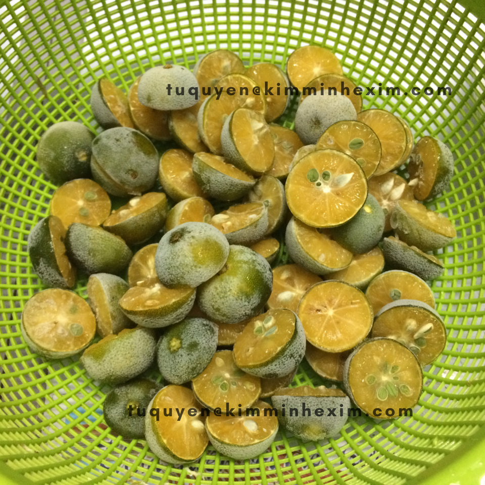 มะนาวคาลามันซีเวียดนามแช่แข็ง LQF แบบทั้งลูก ครึ่งลูก หั่นเป็นชิ้น สดใหม่ 100% บรรจุภัณฑ์สุญญากาศแบบแพ็คใหญ่ พร้อมบรรจุภัณฑ์ลายลูกบอล
