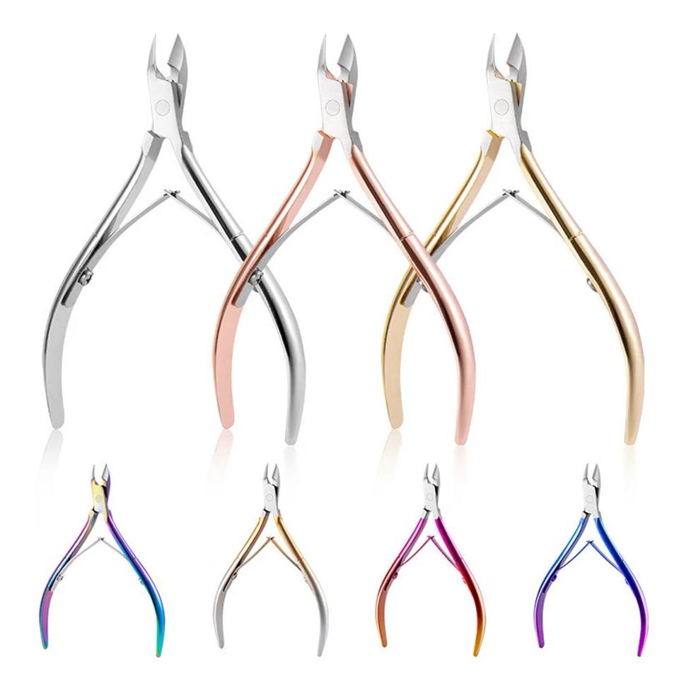 กรรไกรตัดหนังกำพร้าสแตนเลสแบบโค้ง ขนาด 10 ซม. สีไล่ระดับ สำหรับมืออาชีพ ใช้กำจัดหนังกำพร้าและผิวหนังที่ตายแล้ว อุปกรณ์ทำเล็บเท้า