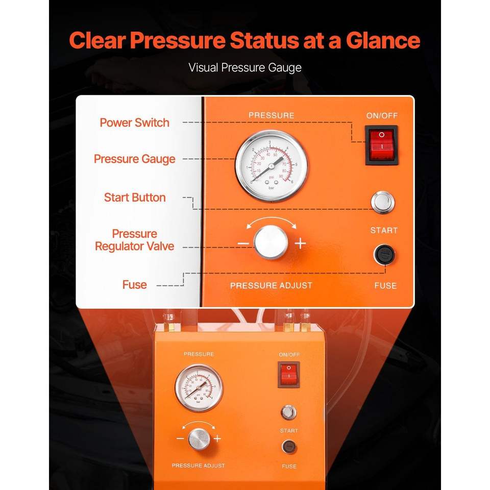 Professional 110V Electric Brake Bleeder Kit Master Cylinder Pressure Gauge and Built-In Air Pump for Brake Repairing
