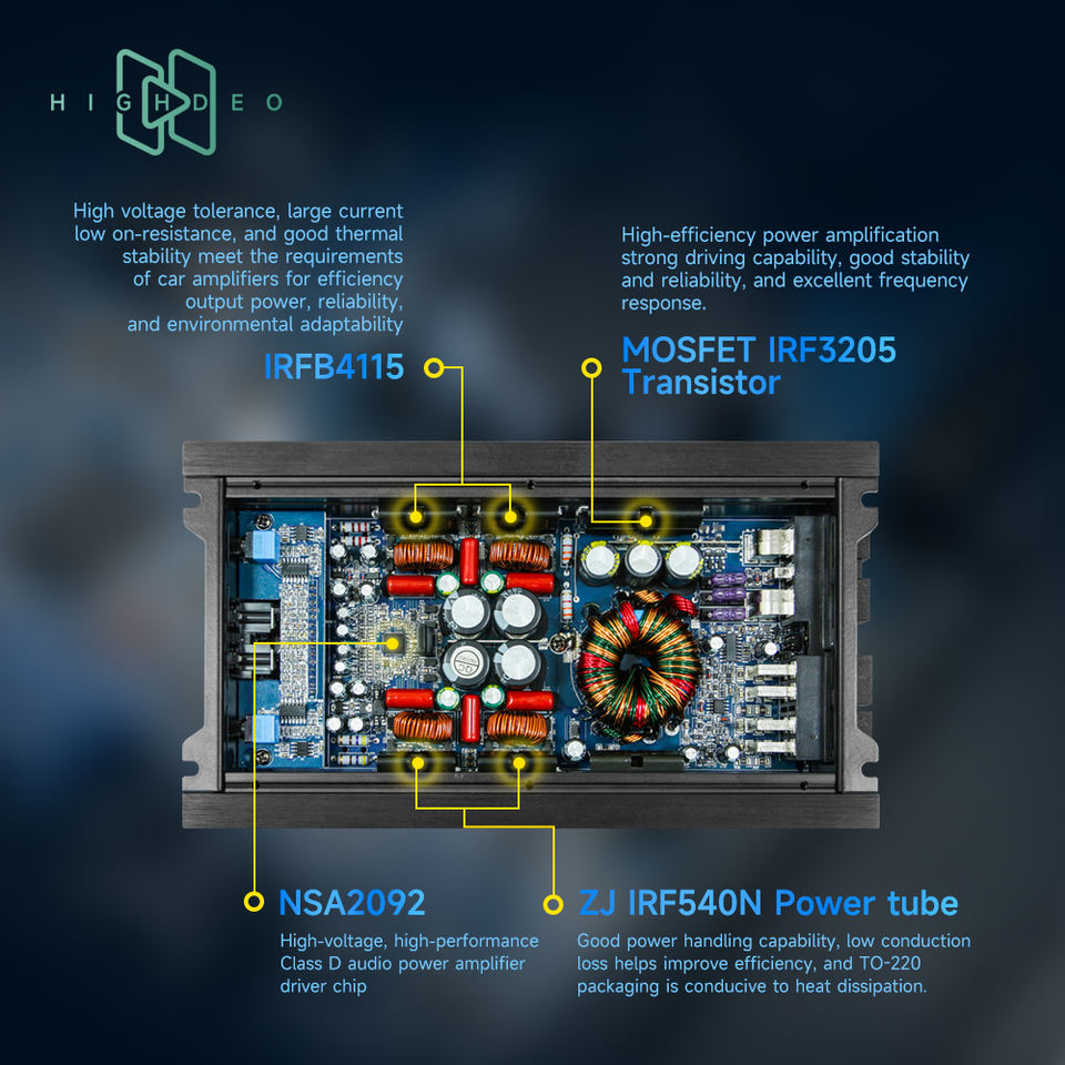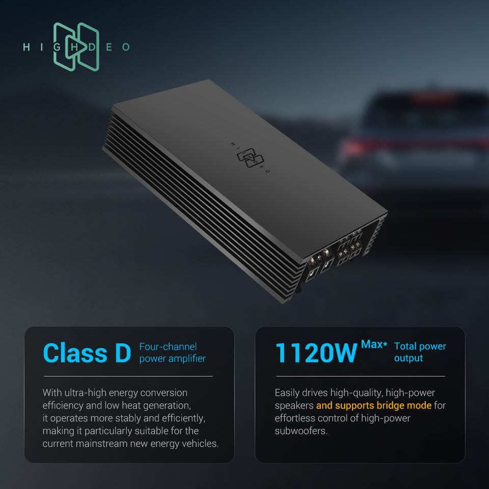 เพาเวอร์แอมป์ระดับมืออาชีพ 1120 วัตต์ 4 แชนแนล คลาส D รุ่น HD-4.1120 สำหรับอัพเกรดระบบเครื่องเสียงรถยนต์