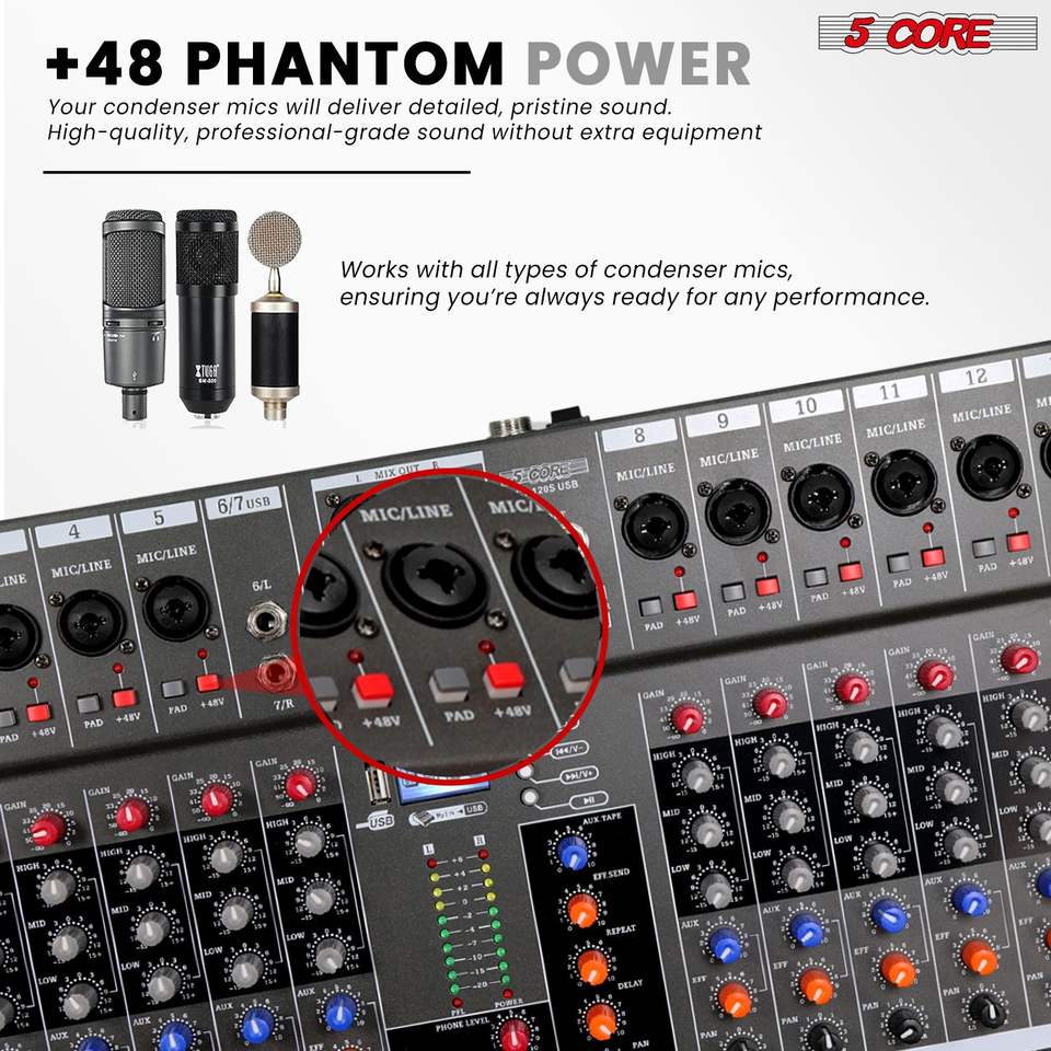Professional 12-Channel DJ Audio Console Mixer PA Analog Bluetooth USB PC Recording Interface for Karaoke Music Podcasts-MX 12CH