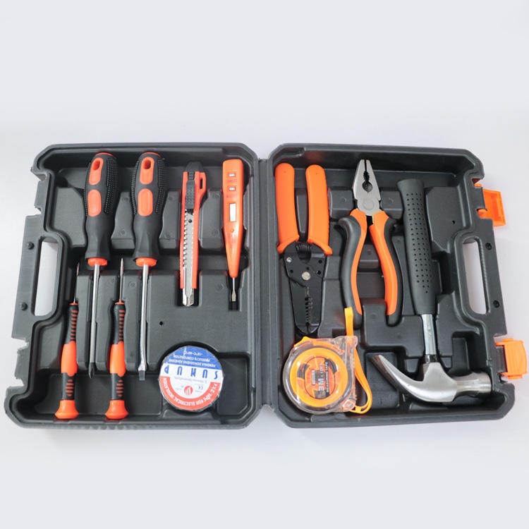 Professional 12 Piece Household Tool Set With Pliers Carbon Steel Metric Standard Hand Tools For Home Repair In Case