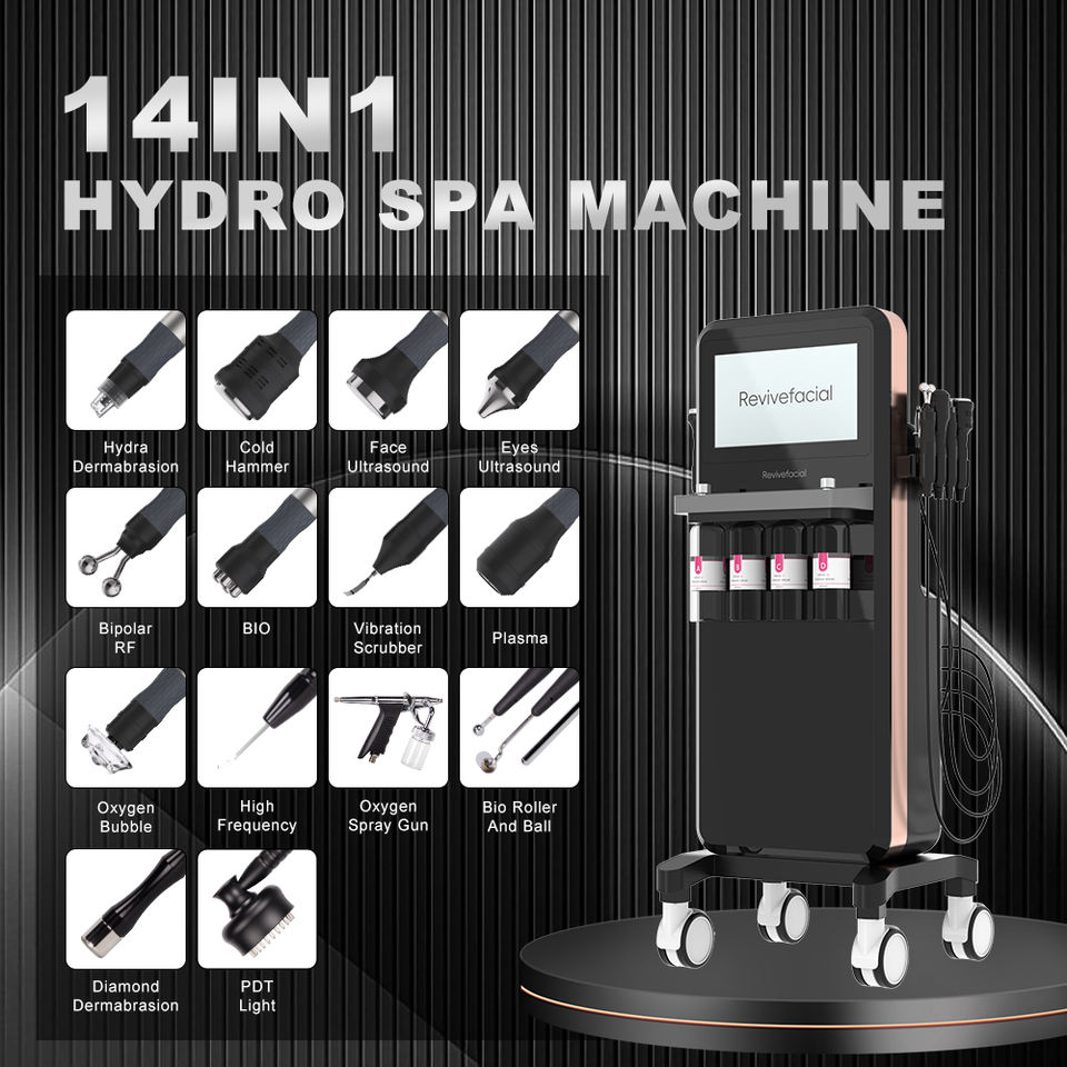 เครื่องไฮโดรเฟเชียล 14-in-1 ระดับมืออาชีพ พร้อมฟังก์ชั่นพ่นออกซิเจน, เดอร์มาเบรชั่น และทำความสะอาดผิวอย่างล้ำลึก