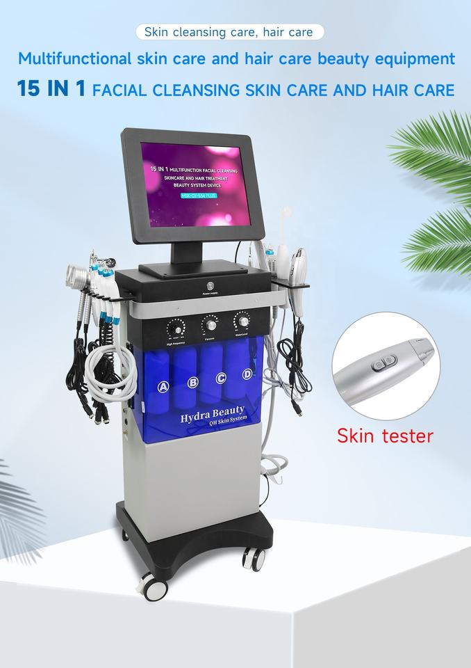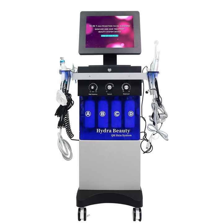เครื่องนวดหน้าไฮโดรเดอร์มาพร้อมขาตั้งอเนกประสงค์แบบตั้งได้15ระดับมืออาชีพ1สามารถทำความสะอาดผิวหน้าได้อย่างล้ำลึกใช้ได้กับ au/cn