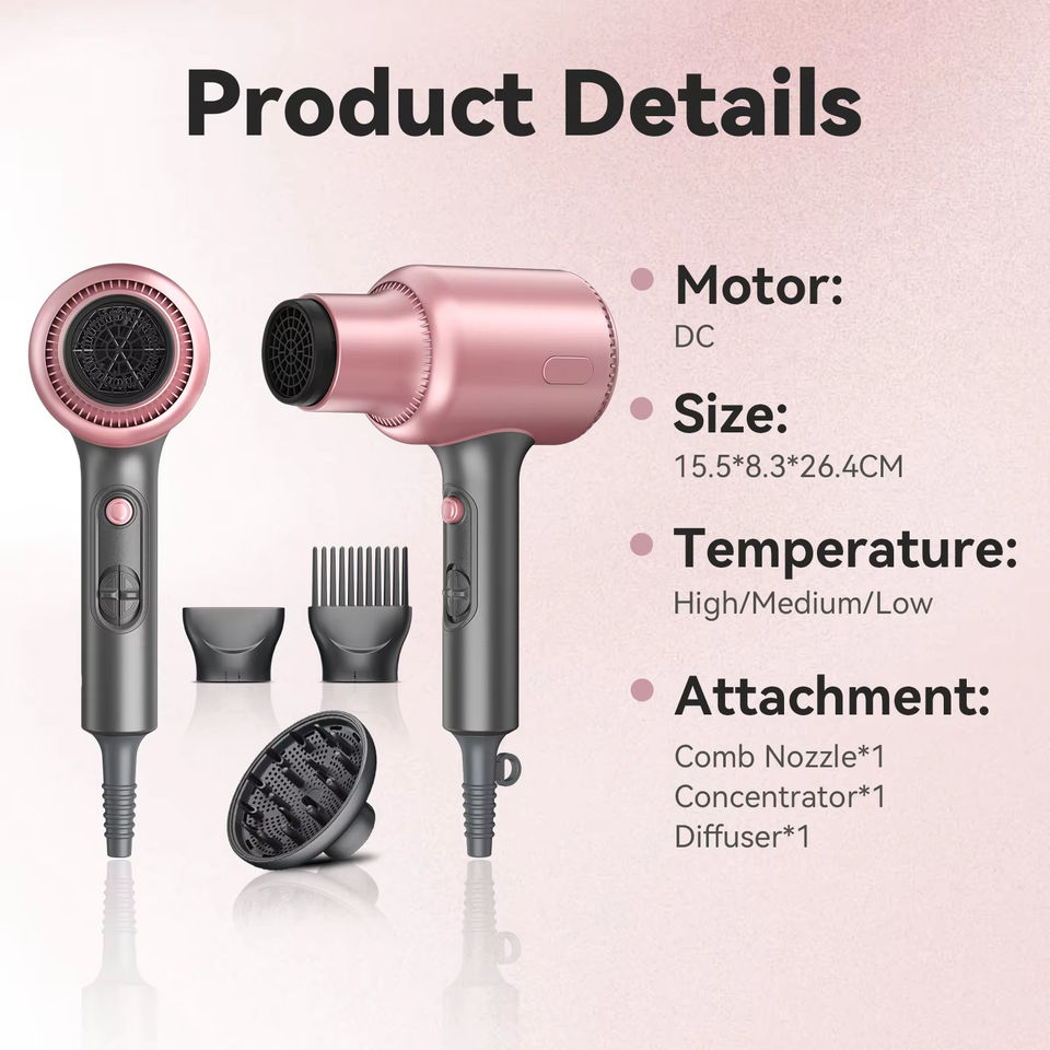 ไดร์เป่าผมแบบมืออาชีพ 1600 วัตต์ พร้อมมอเตอร์ดีซีทรงพลัง ระบบไอออนิก พร้อมหวีจัดแต่งทรงและหัวกระจายลม