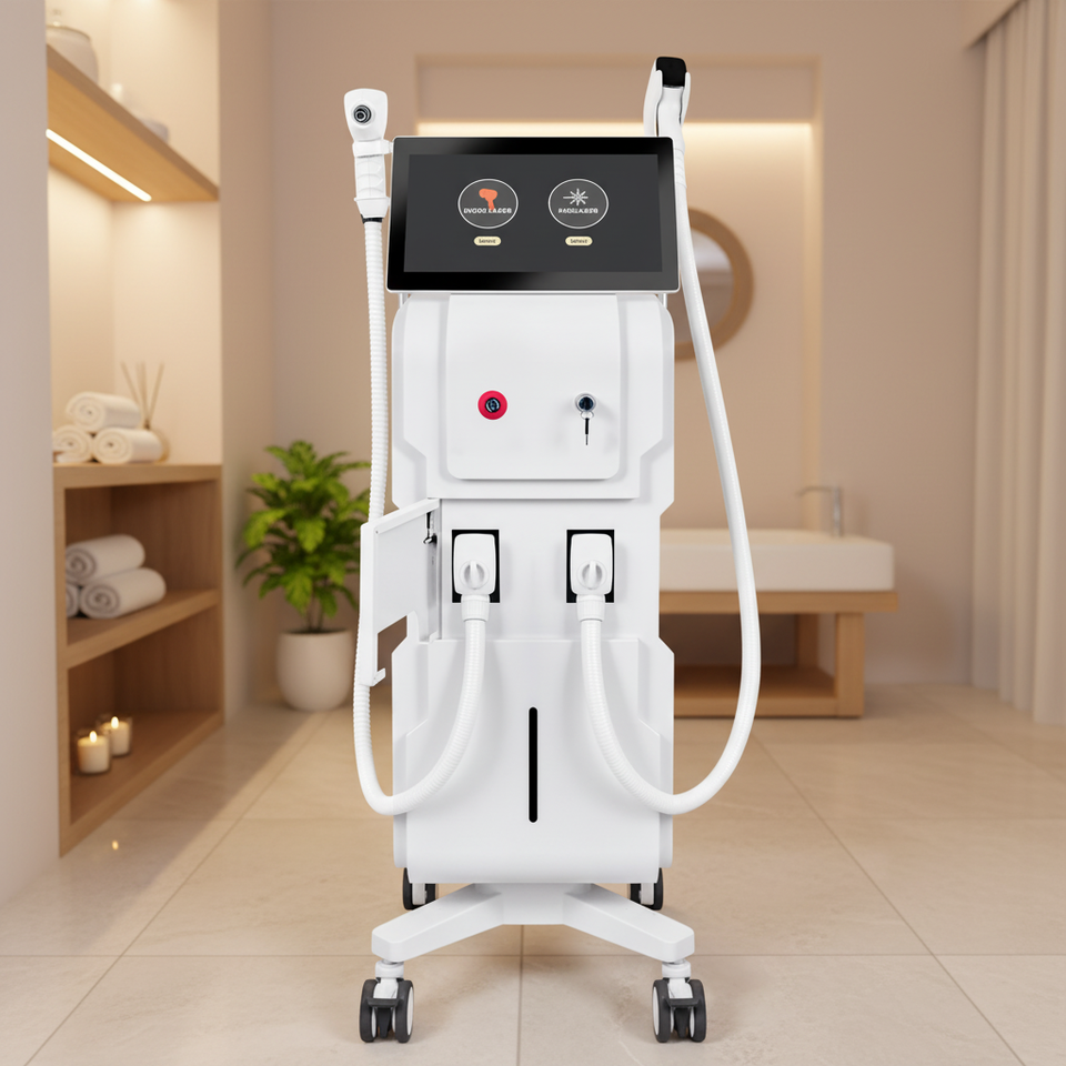 เครื่องมือกำจัดขนถาวรแบบมืออาชีพ 2 in 1 ระบบคู่ 808 พร้อมฟังก์ชั่น Picosecond สำหรับปรับสภาพผิว ซ่อมแซม และฟื้นฟูผิว สำหรับใช้ในสปา