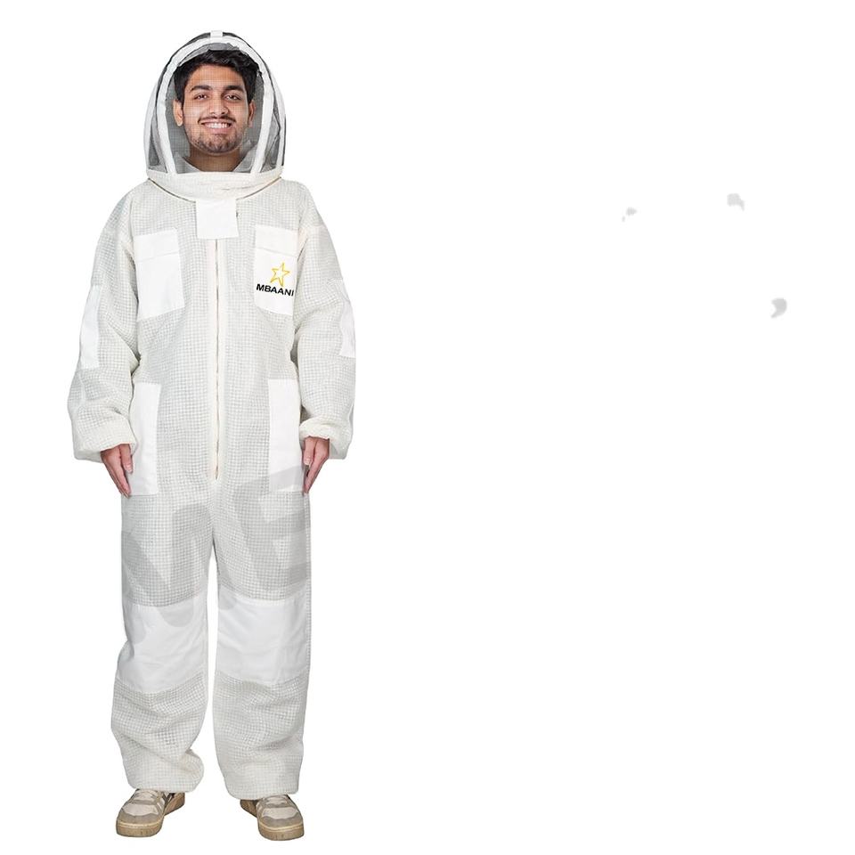ชุดเลี้ยงผึ้ง3ชั้นแบบมืออาชีพระบายอากาศได้ดีป้องกันการต่อยพร้อมผ้าคลุมรั้วและถุงมือ1คู่