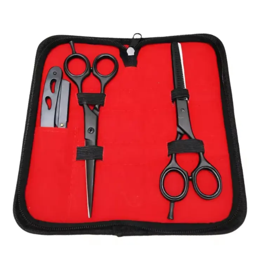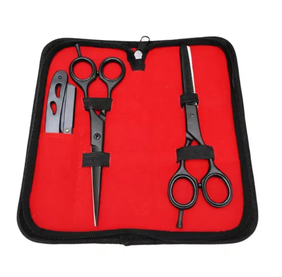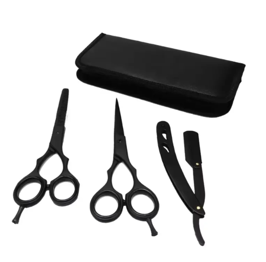 ชุดกรรไกรตัดผม3ชิ้นสำหรับร้านตัดผมส่วนตัวชุดกรรไกรตัดผมสีดำแบบมืออาชีพ