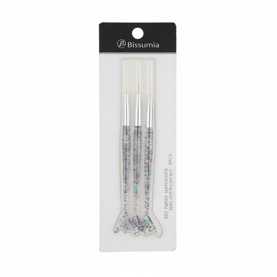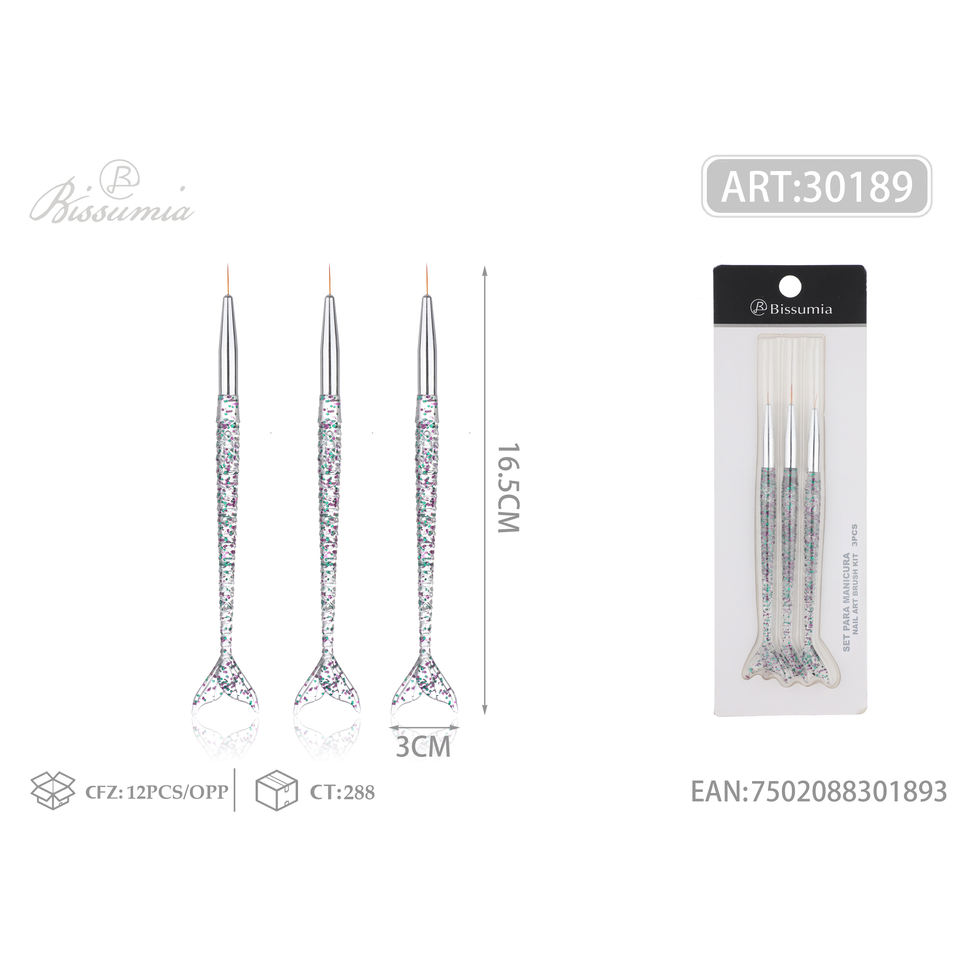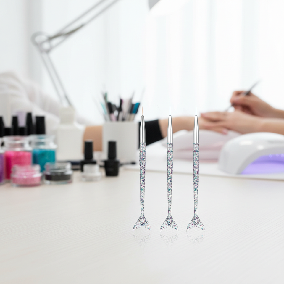 ชุดดินสอเพ้นท์เล็บลายหางนางเงือกแบบโปร่งใส 3 ชิ้น พร้อมด้ามจับประดับเพชร แปรงอะคริลิกพลาสติก สำหรับตกแต่งเล็บ