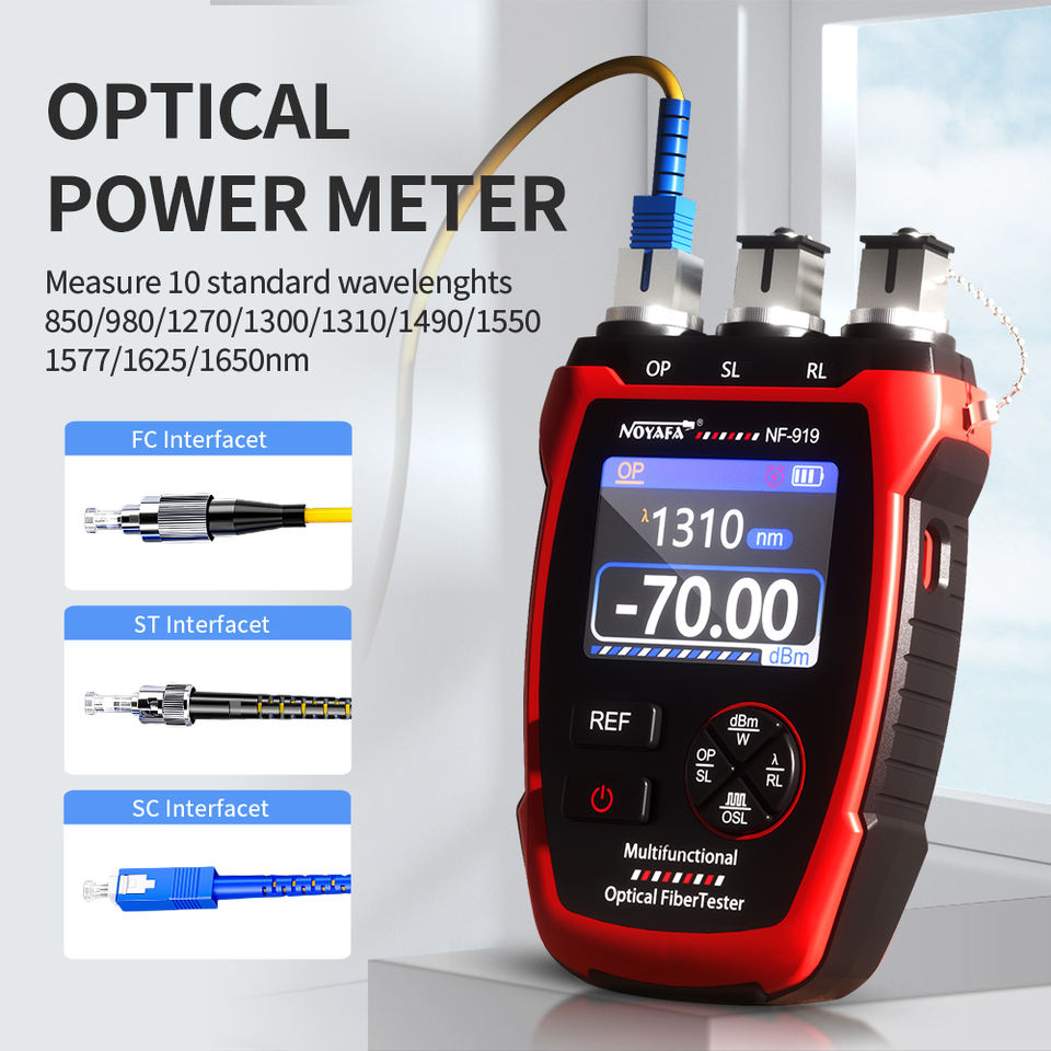 เครื่องวัดพลังงานแสงแบบมืออาชีพ 3-in-1 พร้อมแหล่งกำเนิดแสงที่เสถียรและ VFL รุ่น NF-919 รองรับ 10 ความยาวคลื่น สำหรับการติดตั้ง FTTH/PON