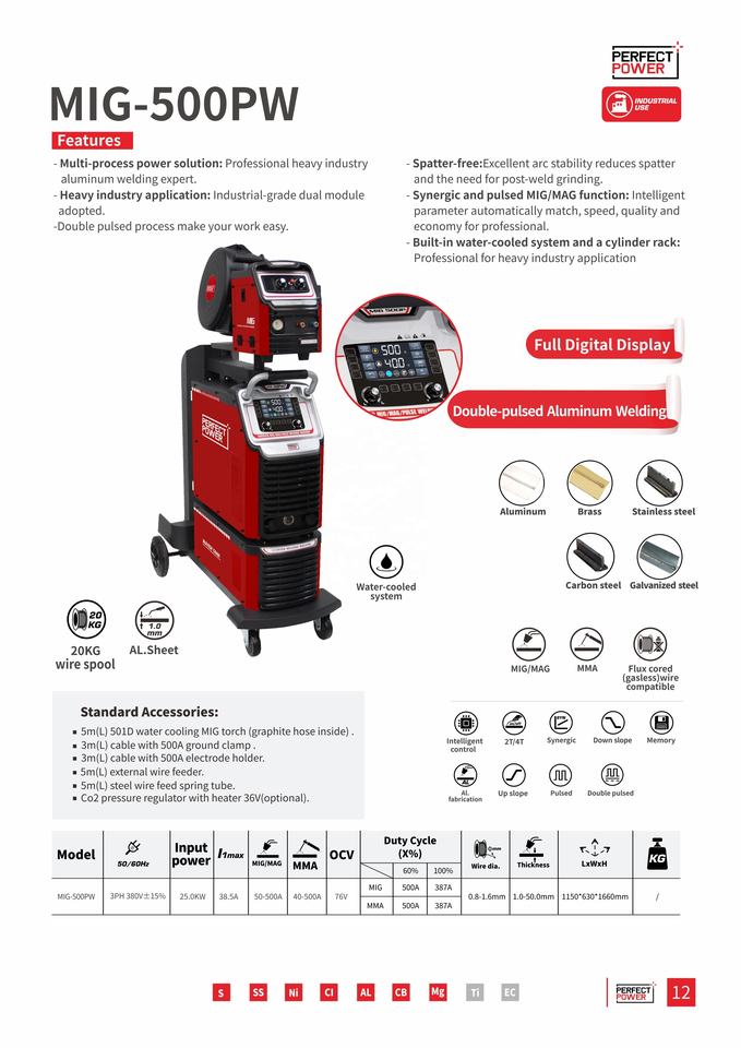 อัตรากระแสไฟขาออก (A)/แรงดันไฟฟ้า (V):500/39.0(MIG) 500/40 0(MMA)