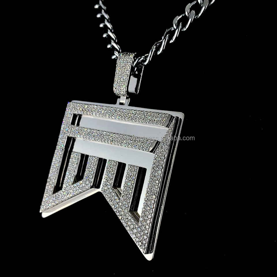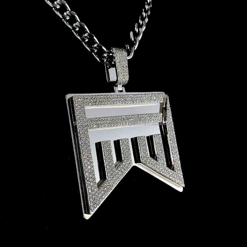 จี้โล่ตัวอักษรเพชรโมอิส925ชุบทองสีเงินสำหรับปาร์ตี้ฮิปฮอปมีตัวอักษรเย็นที่ออกแบบได้เองโลโก้3D มืออาชีพ
