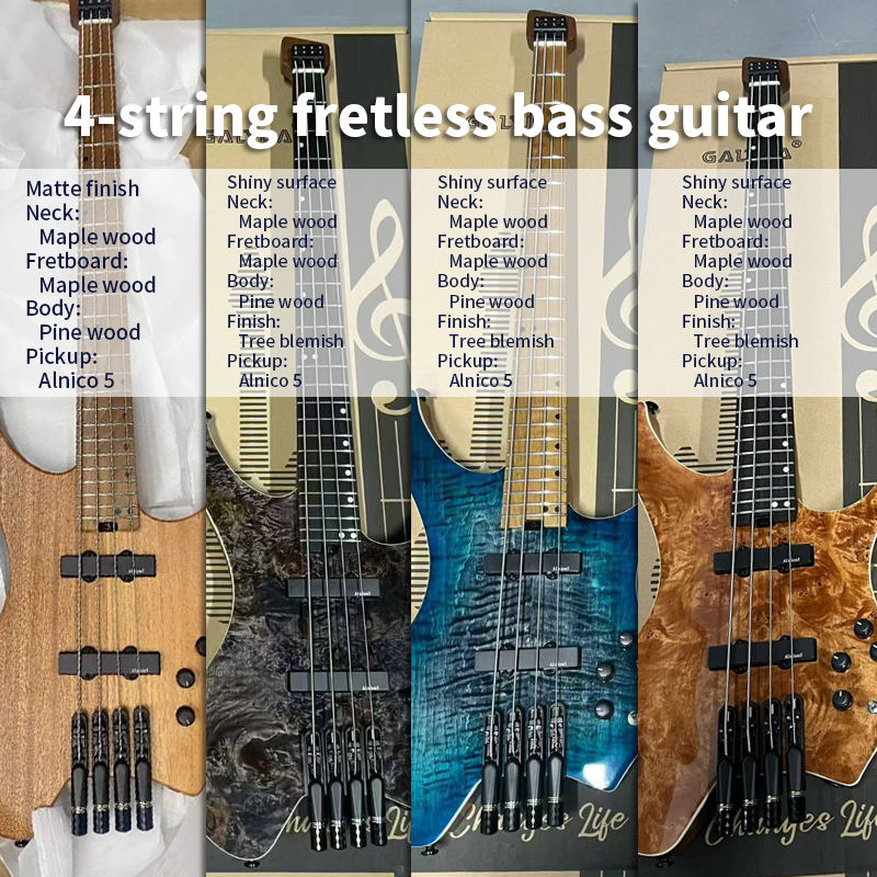 กีตาร์เบสไฟฟ้าแบบไม่มีหัว 4 สาย ระดับมืออาชีพ ตัวกีตาร์ทำจากไม้แอช ด้านหลัง/ด้านข้างทำจากไม้มะฮอกกานี