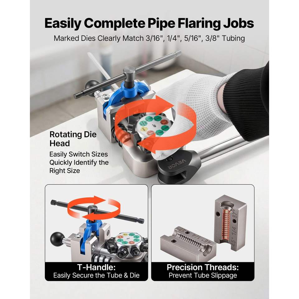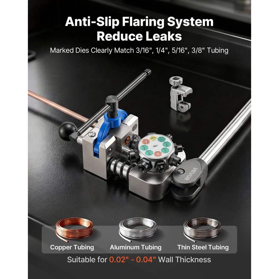 ชุดเครื่องมือทำปลายท่อแบบ Double Bubble Flare มุม 45 องศา สำหรับมืออาชีพ ขนาด 3/16" 1/4" 5/16" 3/8" สำหรับท่อทองแดง อลูมิเนียม และสายเบรก